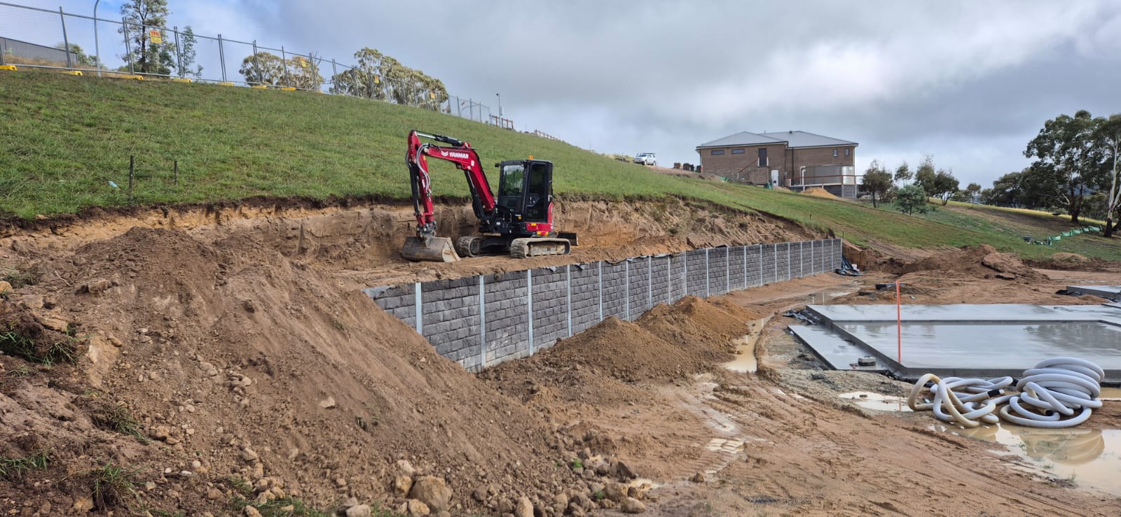 The completed retaining walls provided a structurally sound and visually appealing solution, effectively stabilizing the embankment while allowing for proper drainage. By integrating high-quality materials and a precise construction methodology, Solve Civil delivered a long-lasting, low-maintenance retaining wall system that meets the site’s needs and enhances its usability.