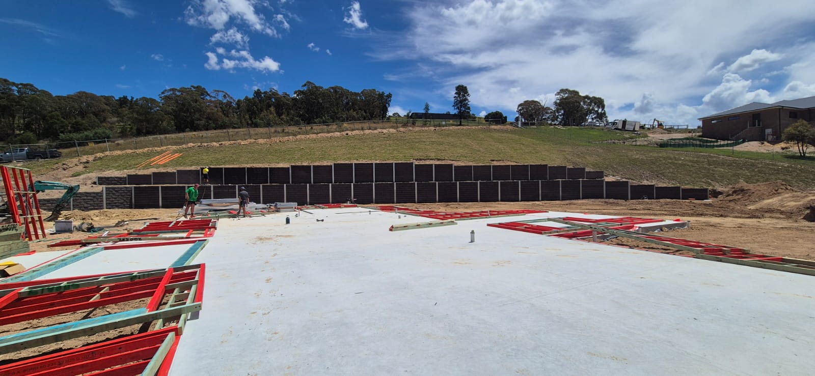 Solve Civil implemented a robust retaining wall system using concrete sleepers for longevity and strength. The scope of work included: ✔️ Excavation and shaping of the base ground level. ✔️ Installation of lower and upper tier concrete sleeper walls, using 600mm diameter piers for 2m high walls and 450mm diameter piers for walls up to 1.6m. ✔️ Placement of galvanised steel posts and Outback Sleepers Mclaren Charcoal heavy-duty sleepers. ✔️ Installation of drainage lines, geofabric, black plastic, and free-draining stone to ensure long-term water management. ✔️ General earthworks and backfilling to reinforce the structure and improve ground stability.
