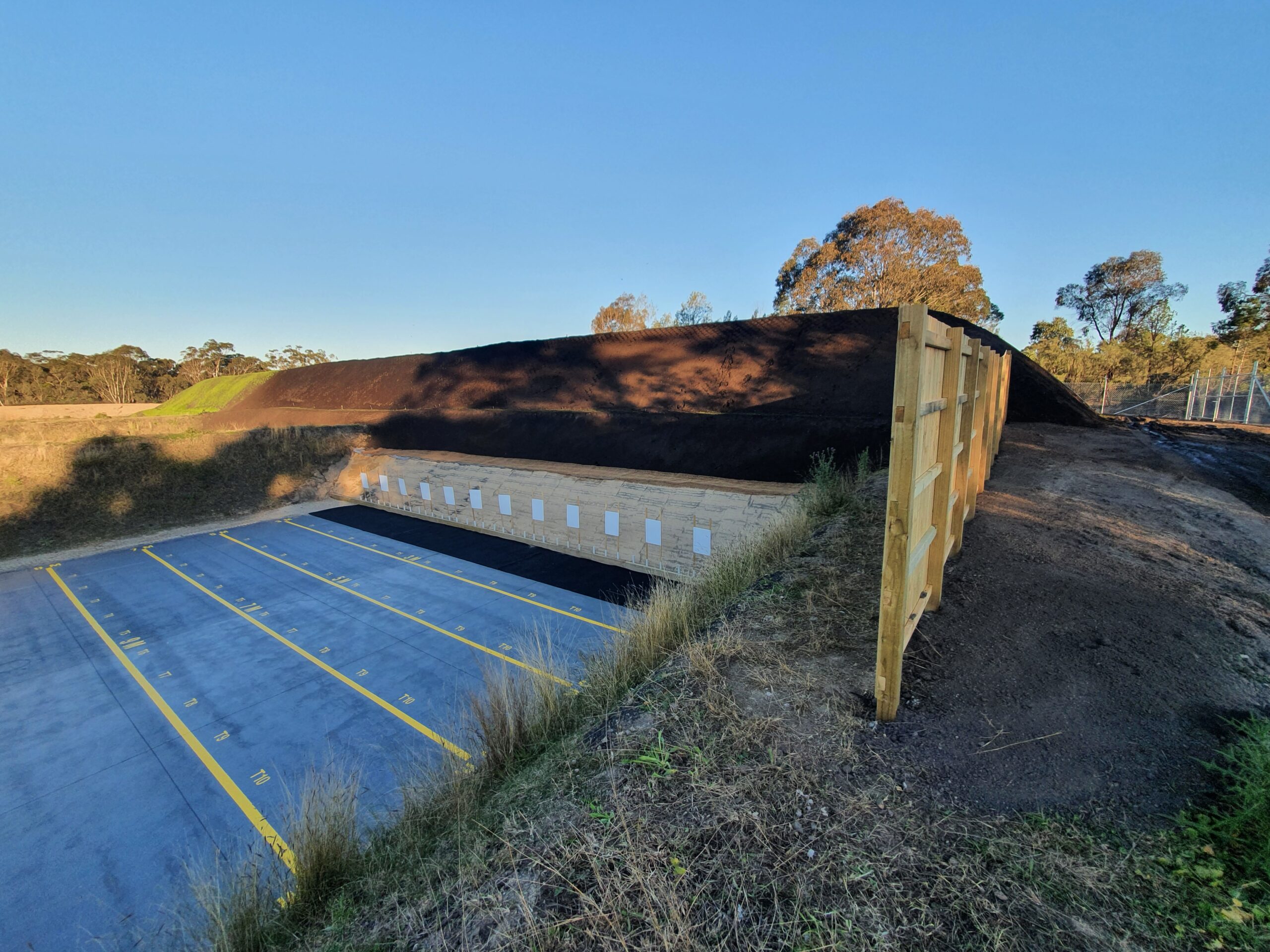 The existing stop butt and bullet catcher required significant reshaping and reinforcement to meet design specifications and safety standards. The project involved integrating the new structures with the surrounding mounds, ensuring stability and long-term durability. Additionally, strict environmental and safety measures were necessary, including erosion control, soil compaction to industry standards, and specialized geocell reinforcement to prevent degradation over time. The works also had to be completed while maintaining operational access and adhering to all required safety and regulatory protocols.